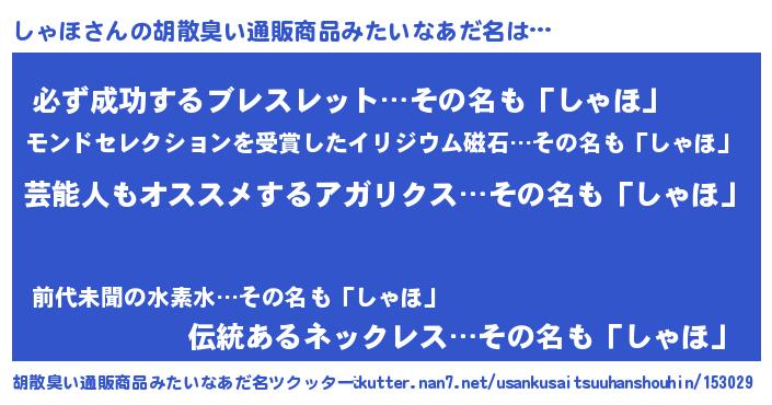 | 欧米人風あだ名 | 『ケンブリッジしゃほ』『マイケルしゃほ』 |