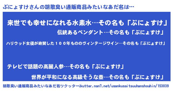 | 意味不明あだ名 | 『住所不定無職ぷにょすけ(7歳)』 |