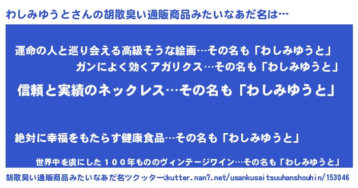 わしみゆうとさんの胡散臭い通販商品みたいなあだ名をツクッター!