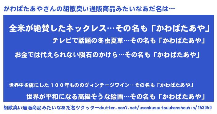 | 女子向けラノベタイトル風あだ名 | 『かわばたあや恋絵巻』 |