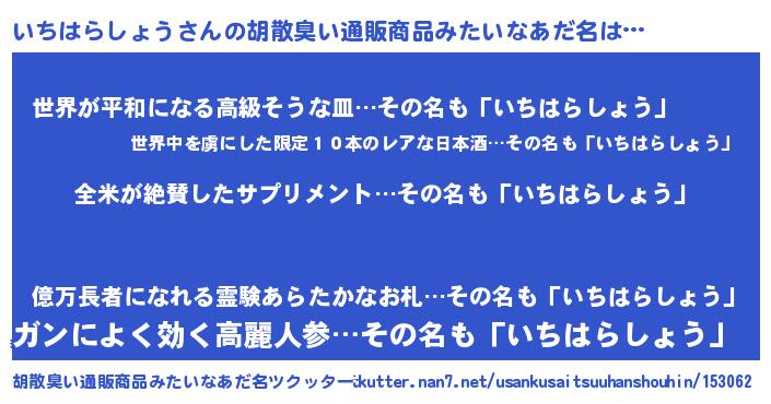| 意味不明あだ名 | 『とにかく怪しいいちはらしょう』 |