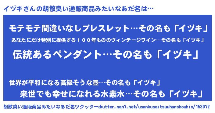 | ヘコむあだ名 | 『イヅっちょ』『イヅにー』『つくし』 |