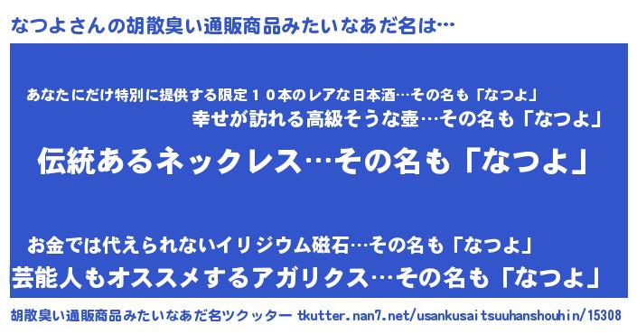 | 男性向けラノベタイトル風あだ名 | 『転生したらなつよだった件』 |