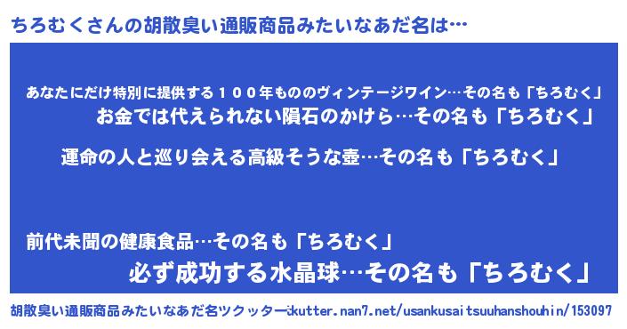 | 肩書あだ名 | 『ちろむく大統領』『ちろむく船長』 |