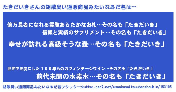| 意味不明あだ名 | 『たきだいきフォーエバー』 |