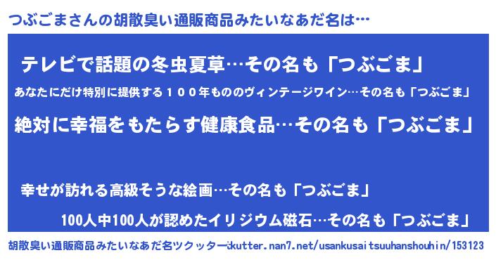 | 男性向けラノベタイトル風あだ名 | 『つぶごまという概念が存在しない退屈な世界 』 |