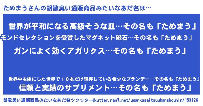 | 意味不明あだ名 | 『自称ためまう』『ためまうフォーエバー』 |