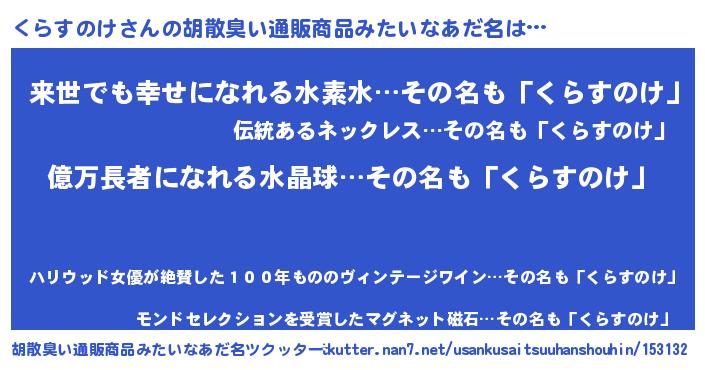 | ヘコむあだ名 | 『くらにゅー』『くらすのけ(震え声)』 |