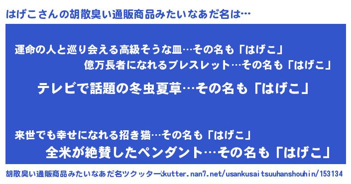 | 意味不明あだ名 | 『自称はげこ』『はげこフォーエバー』 |