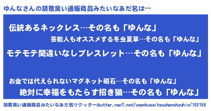 | 意味不明あだ名 | 『ペロリンゆんな』『永久保存ゆんな』 |