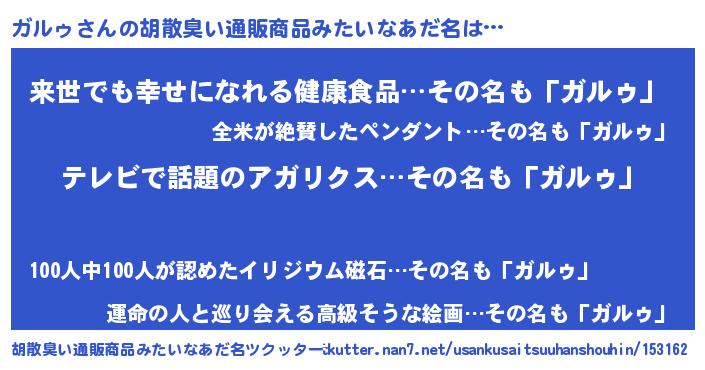 | 意味不明あだ名 | 『自称ガルゥ』『永久保存ガルゥ』 |
