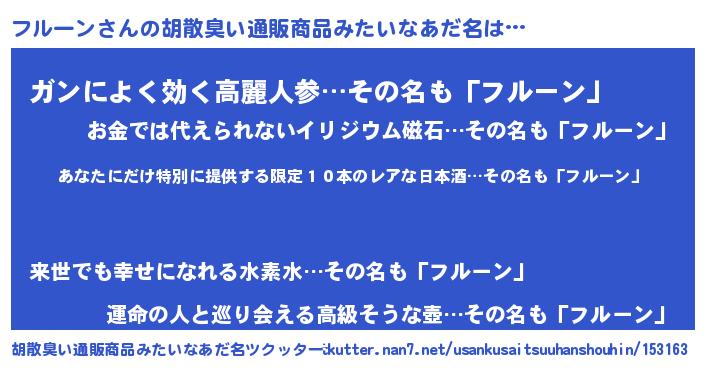 | 恥ずかしいあだ名 | 『フルーンデラックス』『フルっちょ』 |