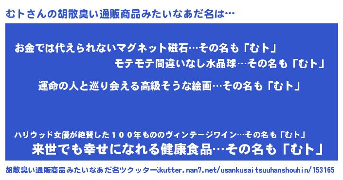 | 恥ずかしいあだ名 | 『むトっちょ』『ボンバーヘッドむト』 |