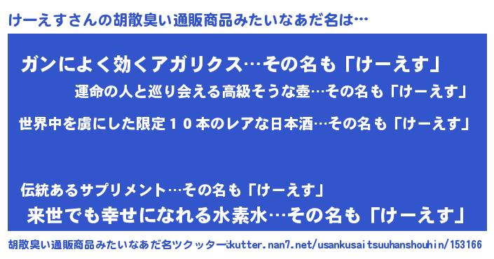 | ヘコむあだ名 | 『けーえす(苦笑)』『牛乳』 |