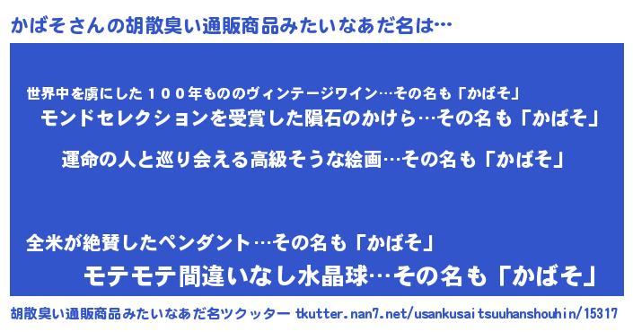 | 意味不明あだ名 | 『かばそフォーエバー』『ペロリンかばそ』 |