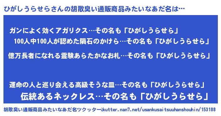 | ヒーロー風カッコイイあだ名 | 『スーパーヒガシウラセラ』 |