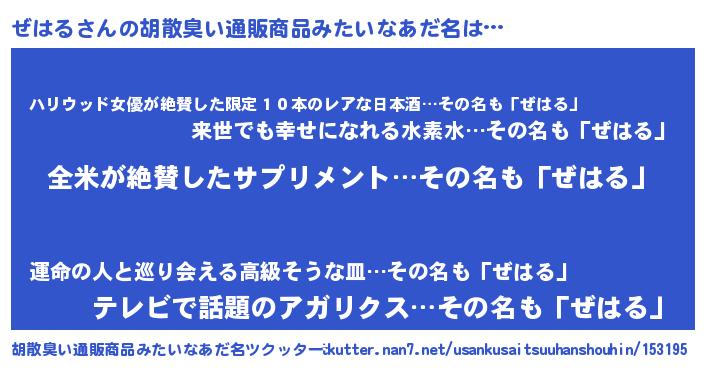 | ヘコむあだ名 | 『ぜはお』『ぜはる(小並感)』 |