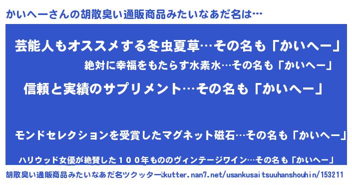 | ヘコむあだ名 | 『かいを』『かいへー(苦笑)』『牛乳』 |