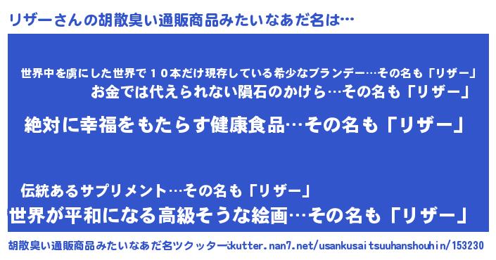 | 恥ずかしいあだ名 | 『リザちん』『リザっちょ』 |