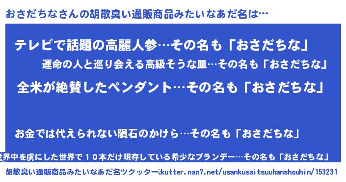 | 意味不明あだ名 | 『ニラ科おさだちな属』『自称おさだちな』 |