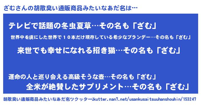 | 女子向けラノベタイトル風あだ名 | 『ざむの契約王妃』『ざむの玉の輿計画!』 |