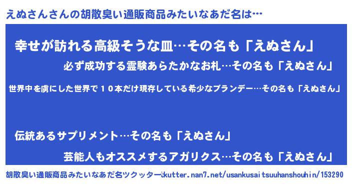 | 意味不明あだ名 | 『住所不定無職えぬさん(86歳)』 |