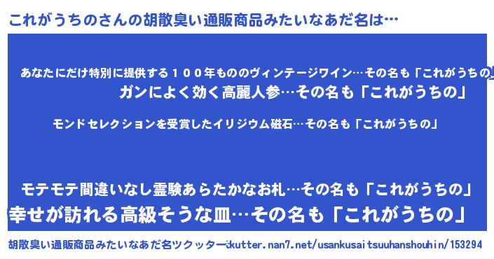 | ヒーロー風カッコイイあだ名 | 『天空の使者これがうちの』 |