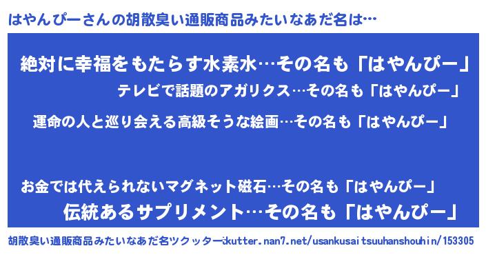 | 欧米人風あだ名 | 『はやんぴークリステル』 |