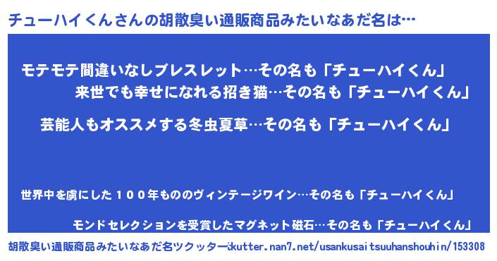 | 伝説のあだ名 | 『封印されしスナイパーチューハイくん』 |