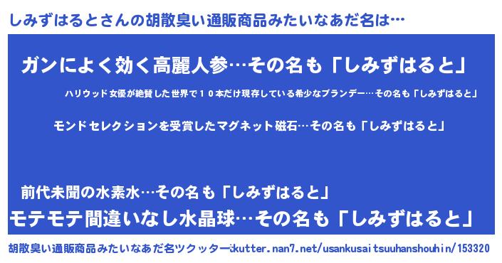 ヘコむあだ名 | 『しみふぇ~』『しみずはると(笑)』 |