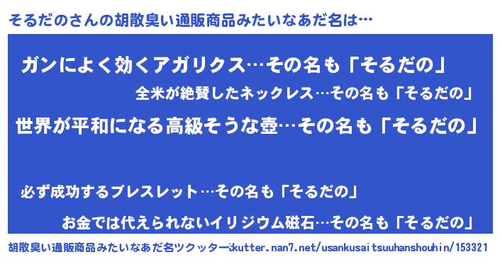 | 意味不明あだ名 | 『そるだのフォーエバー』『自称そるだの』 |