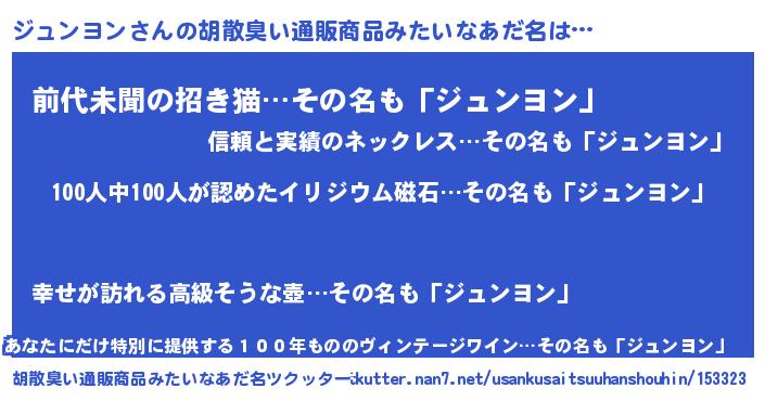 | ヘコむあだ名 | 『ジュンヨン(笑)』『ジュっぺ』 |