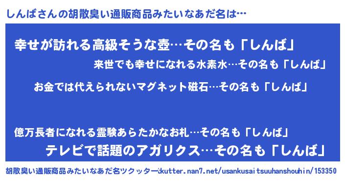 | 意味不明あだ名 | 『眠気覚ましガムしんば味』『自称しんば』 |