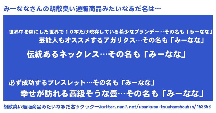 | 意味不明あだ名 | 『とにかく怪しいみーなな』 |