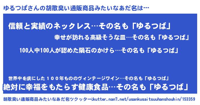 | 男性向けラノベタイトル風あだ名 | 『おまえをオタクにしてやるから、俺をゆるつばにしてくれ! 』 |