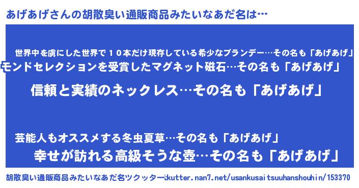 | 意味不明あだ名 | 『とにかく怪しいあげあげ』 |