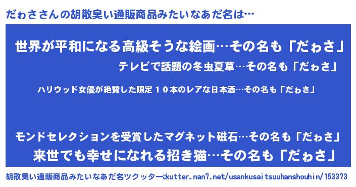 | 意味不明あだ名 | 『住所不定無職だゎさ(68歳)』『自称だゎさ』 |