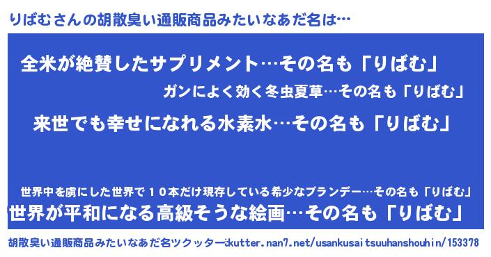 | ヘコむあだ名 | 『りばむ(苦笑)』『りばぷりん』 |