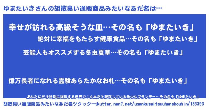 | 意味不明あだ名 | 『自称ゆまたいき』『永久保存ゆまたいき』 |