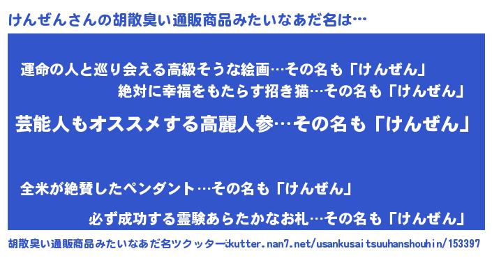 | 意味不明あだ名 | 『自称けんぜん』『けんぜんフォーエバー』 |
