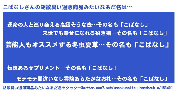 | ヘコむあだ名 | 『酢こんぶ』『こばにゅー』 |