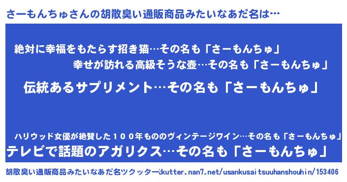 | 意味不明あだ名 | 『とにかく怪しいさーもんちゅ』 |