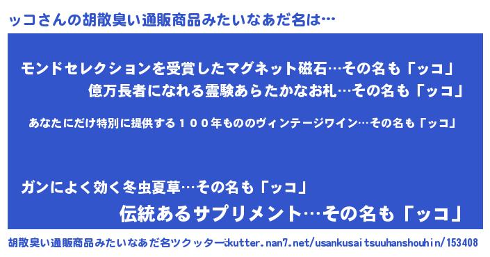 ッコさんの胡散臭い通販商品みたいなあだ名をツクッター!