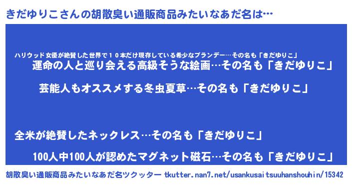 | 意味不明あだ名 | 『自称きだゆりこ』 |