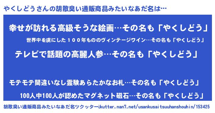 | 男性向けラノベタイトル風あだ名 | 『転生したらやくしどうだった件』 |