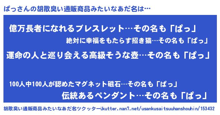 | 意味不明あだ名 | 『ぱっフォーエバー』『ペロリンぱっ』 |