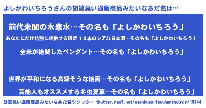 | 男性向けラノベタイトル風あだ名 | 『よしかわいちろうに滅ぼされるだけの簡単なお仕事です』 |