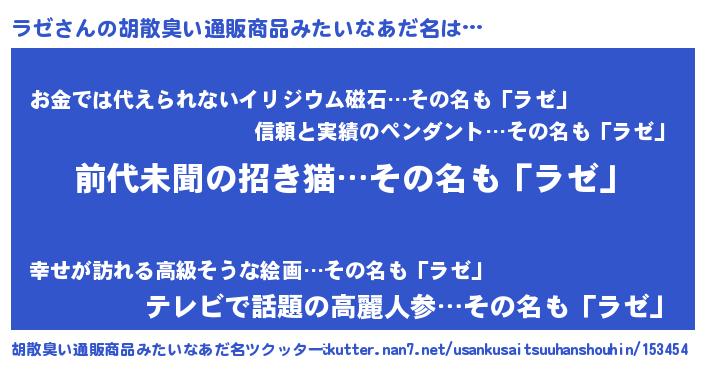 | ヘコむあだ名 | 『ラゼ(小並感)』『ラゼっぺ』 |