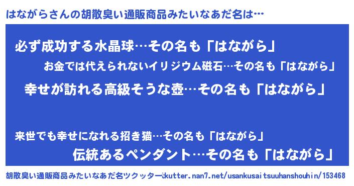 | 意味不明あだ名 | 『はながらフォーエバー』 |