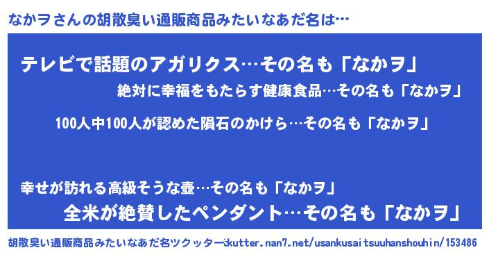 | 意味不明あだ名 | 『眠気覚ましガムなかヲ味』『自称なかヲ』 |